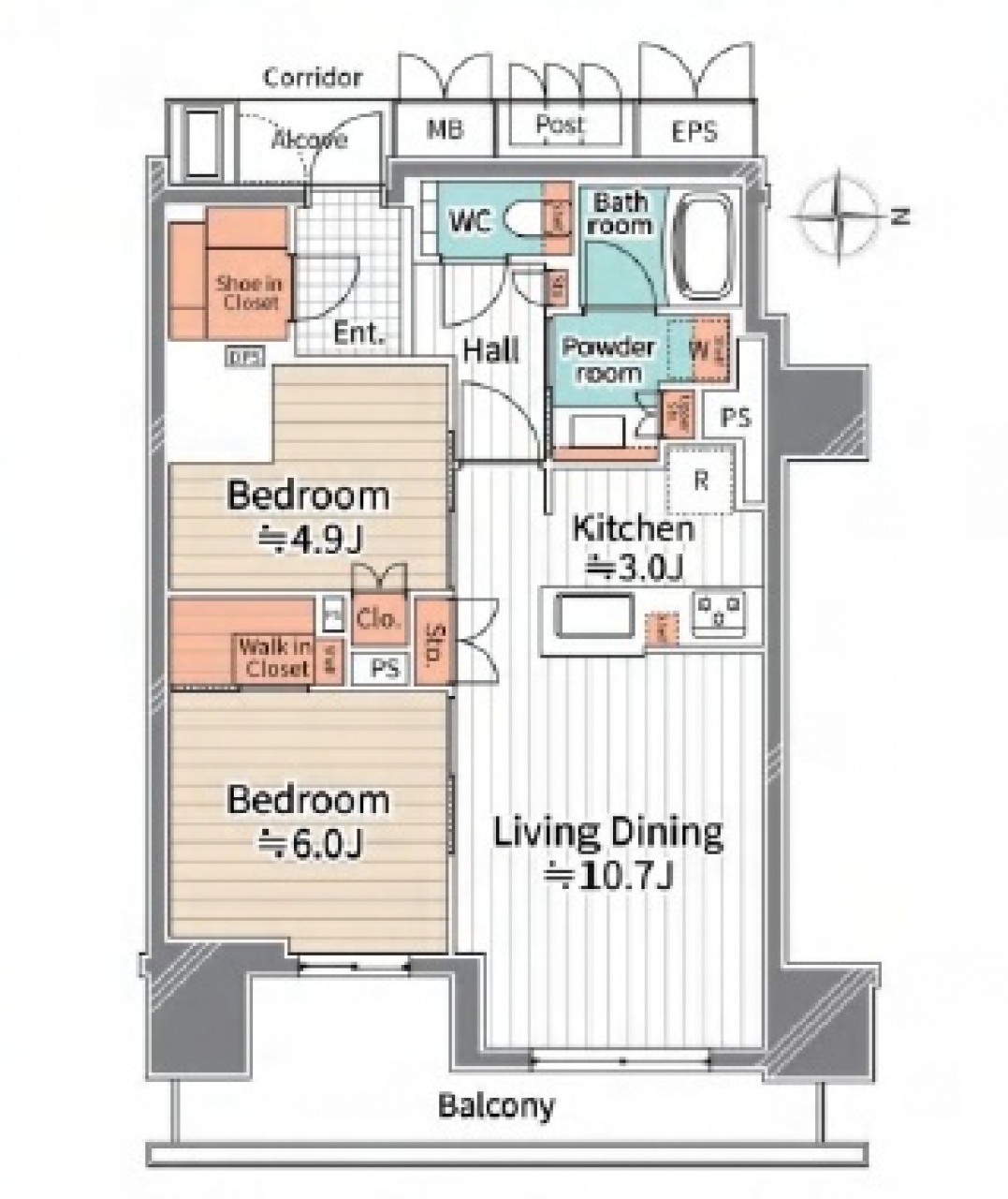 専有面積 60.05m2(18.16坪) 間取り 2LDK