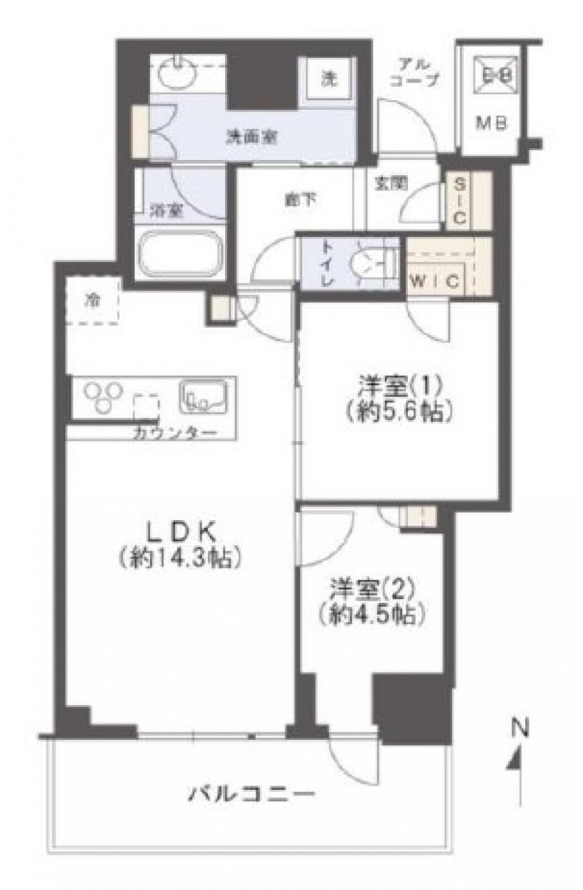 専有面積 57.05m2(17.25坪) 間取り 2LDK