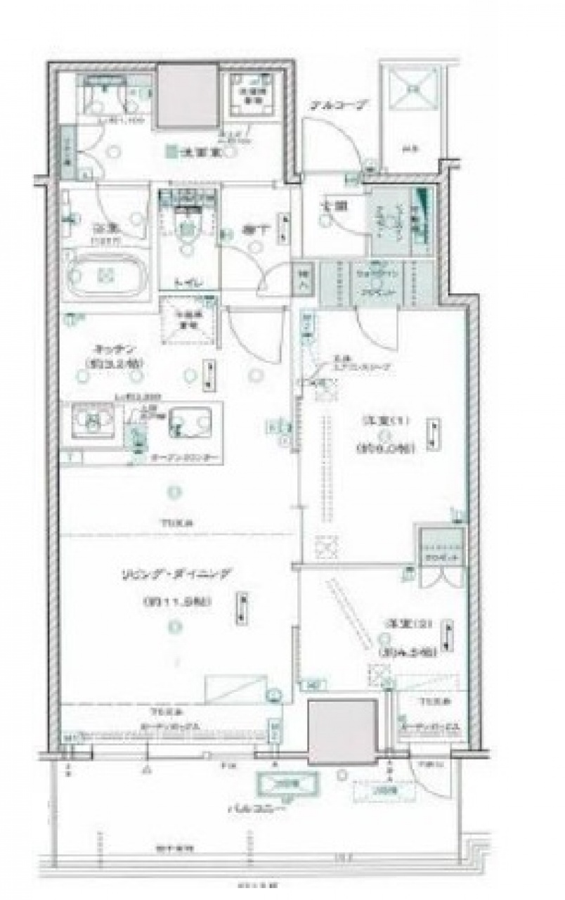 専有面積 58.52m2(17.7坪) 間取り 2LDK
