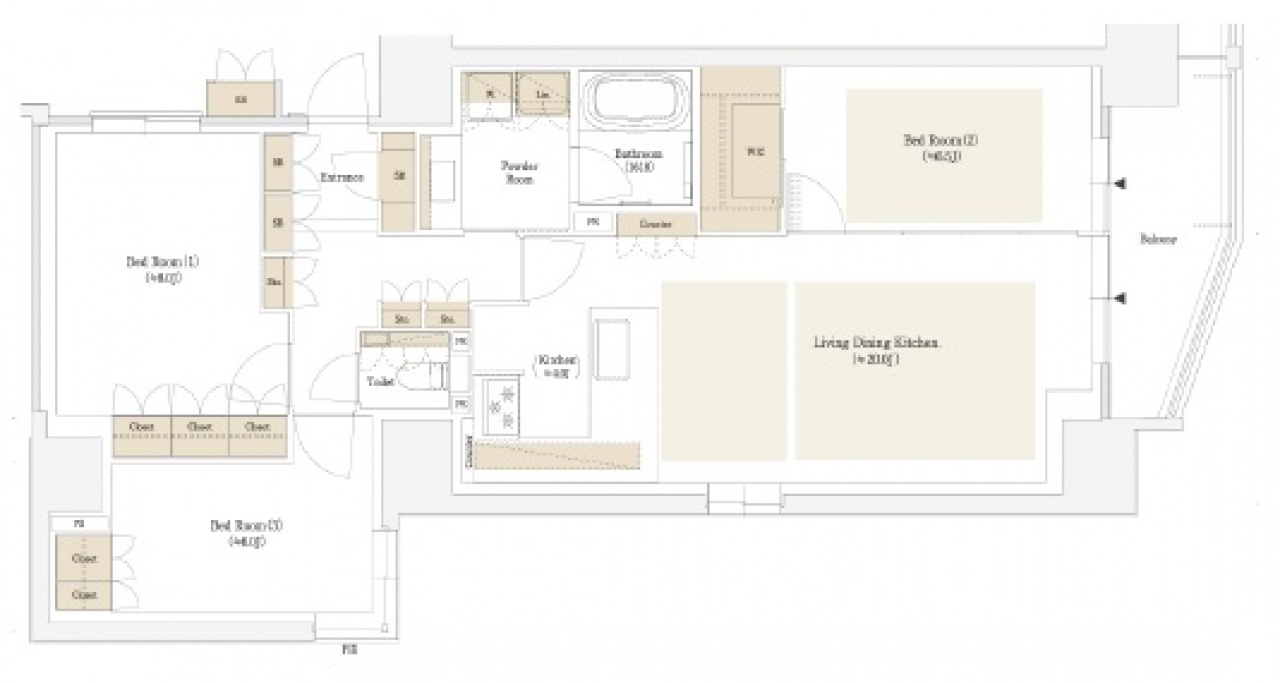 専有面積 94.30m2(28.52坪) 間取り 3DK