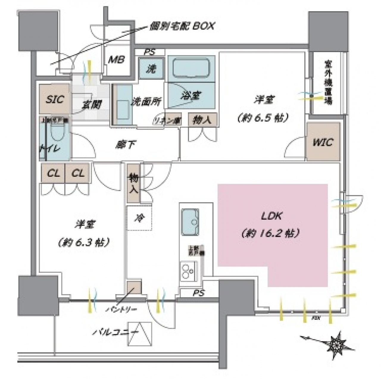 専有面積 67.93m2(20.54坪) 間取り 2LDK